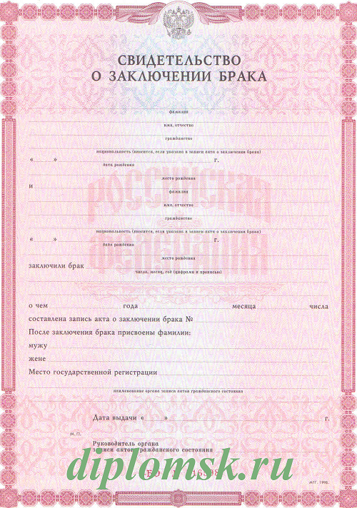 Купить свидетельство о заключении брака абсолютно безопасно, поскольку все нужные штампы и подписи делаются превосходного качества. Воссоздать свидетельство о браке, сделав обращение в организацию, его выдававшую, конечно, не так затратно. Но если представить, сколько хлопот это может вызвать, гораздо выгоднее купить свидетельство о заключении брака. Да и кому нужны лишние телодвижения, когда имеются другие варианты.Тем, кто переехал жить в другое место, тем, у кого нет возможности ожидать, пока сделают документ, мы рекомендуем купить свидетельство о браке. Не забывайте, что у нас работает доставка, вы сможете приобрести свидетельство о заключении брака в любом приемлемом для вас населённом пункте. Если свидетельство о заключении брака было изначально сделано с ошибками, то лучше купить свидетельство о браке, вместо того, чтобы выяснять, почему недочёты были допущены и как их лучше устранить.
